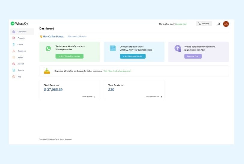 A custom-built Laravel-based WhatsApp CRM dashboard for WhatsCy, designed with a tailored UI/UX for efficiency and scalability. The platform enables seamless management of customer conversations, contacts, and campaigns through an intuitive interface that streamlines workflows and enhances customer engagement.